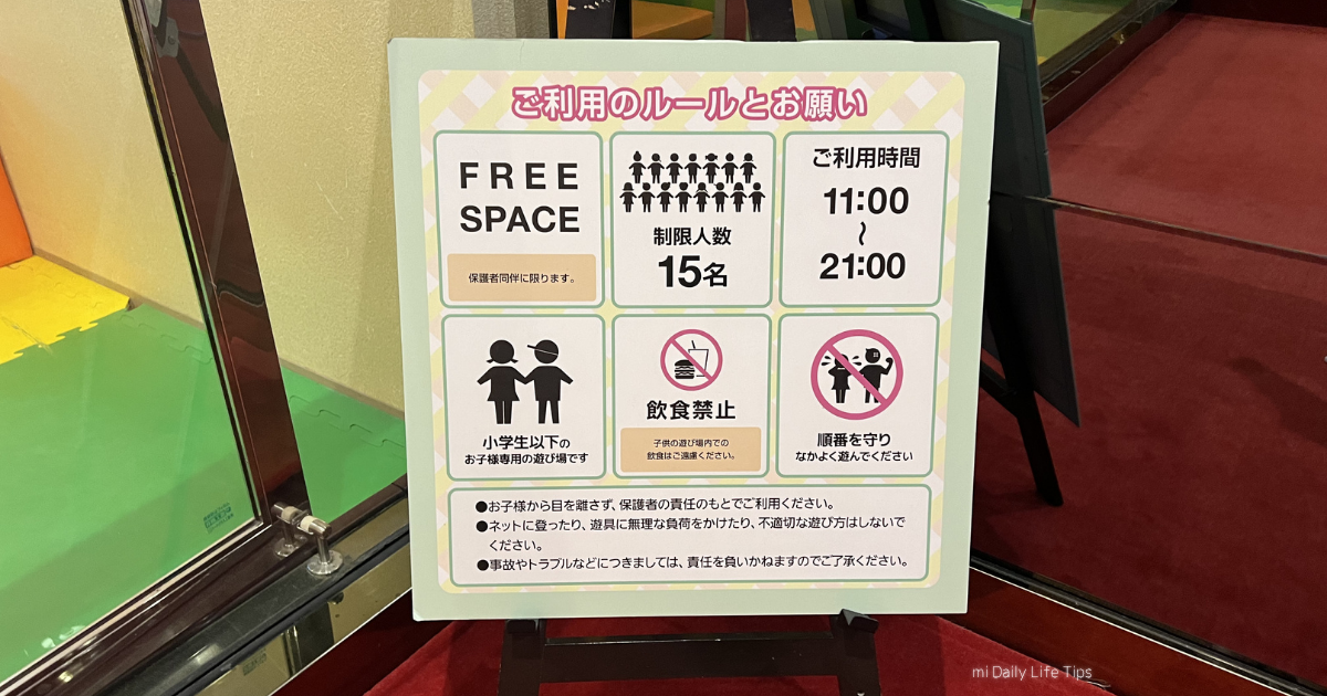 平日の夕方16時頃に行った際はひと家族遊んでいる程度でスペースに余裕がありましたが、18時頃は4家族ほどいて少し混みあった印象でした。