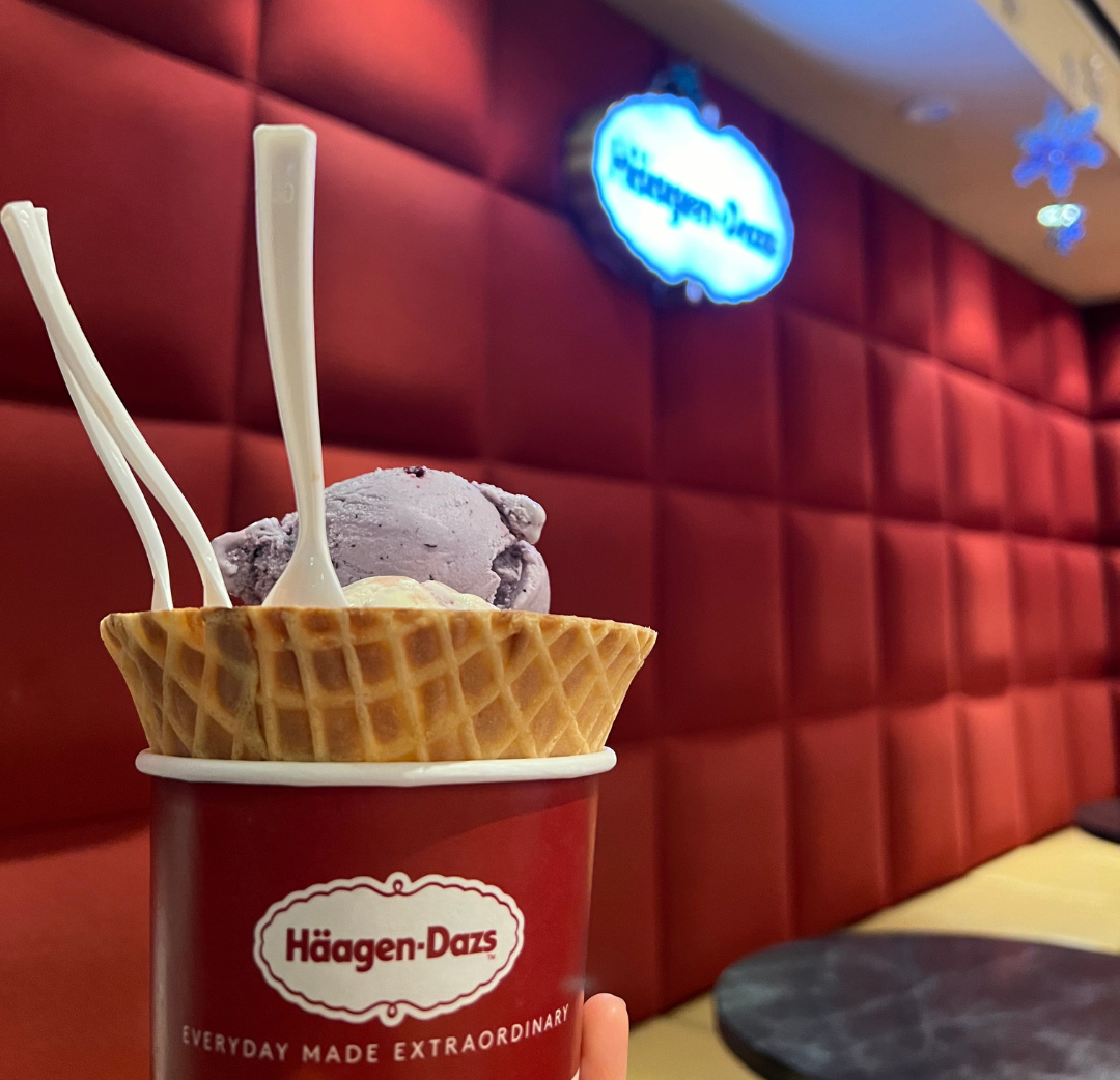 チェックインしたのは19:30頃だったので、夜のお散歩がてらホテルを散策し、併設されているハーゲンダッツカフェのアイスクリームでデザートタイムを楽しみました♪