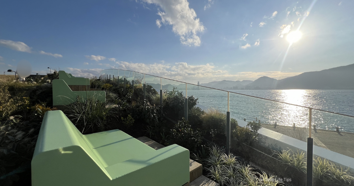 子供に嬉しい芝生エリアや絶景を見渡せるカウンタータイプの休憩スペース、ソファのようにゆったりと座れるベンチなどがあり、席数も多めでした。